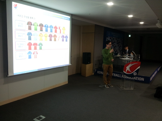 프로축구연맹이 스포츠 행정가를 직접 길러내고자 국내 프로 스포츠 단체 최초로 설립한 '축구산업아카데미(Football Industry Academy)' 수강생들이 8일 서울 종로구 신문로 축구회관에서 지난 22주 동안 학습한 내용을 바탕으로 개인 발표를 하는 시간을 가졌다.