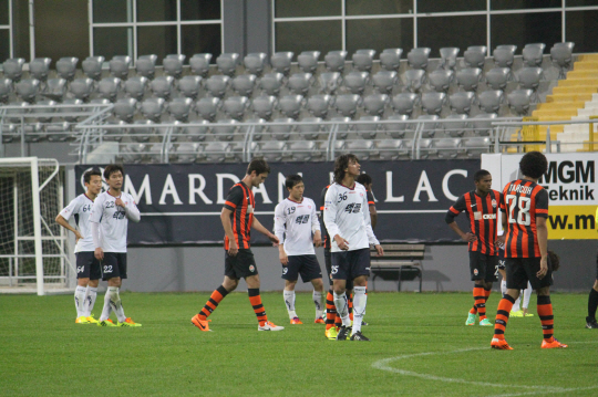 성남은 11일(한국시각) 터키 안탈리아에 위치한 마르단 스타디움에서 열린 연습경기에서 다리요 스르나와 루이스 아드리아누 등 호화 멤버가 총출동한 샤흐타르에 0대2로 졌다.