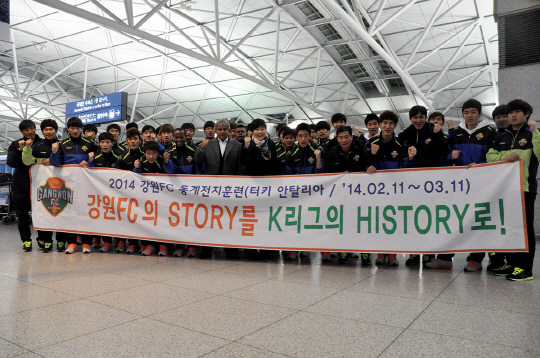 강원FC가 11일 밤 11시 50분 인천국제공항을 통해 터키 안탈리아로 전지훈련을 떠났다.