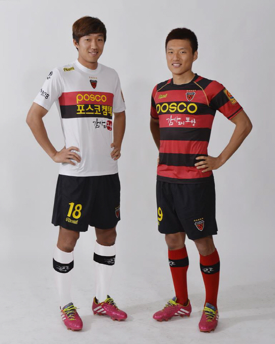 포항 선수단은 15일 전지훈련지인 전남 고흥에서 포토데이를 실시했다. 이날 포항 선수단은 단체사진을 비롯해 새롭게 단장한 홈, 원정 유니폼도 함께 선보였다. 새 시즌 홈 유니폼은 포항의 전통 컬러와 디자인을 그대로 계승했고, 엠블럼 위에는 지난해 클래식 우승으로 추가된 5개의 별이 포함됐다. 원정 유니폼은 기존 흰색에 포항을 상징하는 검정색과 붉은색 선이 추가되면서 전통을 강조했다. 왼쪽 소매에는 클래식 우승을 상징하는 '황금패치'가 당당히 자리를 잡았다. 유니폼 모델로 나선 고무열은 "황금패치가 가장 마음에 든다"고 웃으며 만족감을 드러냈다. 이명주 역시 "지난해에 비해 유니폼 기능적인 면도 충실해진 것 같다"고 말했다.