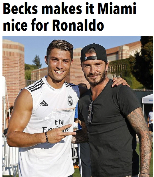 미국 메이저리그 사커 관계자는 더선을 통해 "베컴은 팀이 커지려면 슈퍼스타가 필요하다는 것을 알고 있다. 전세계에서 호날두보다 더 큰 선수는 없다"고 했다. 베컴과 호날두는 비슷한 부분이 많다. 맨유 7번 셔츠의 주인공이었고, 화려한 외모로 전세계적 인기를 얻고 있다. 상업적으로도 가치가 대단하다. 베컴은 초상권을 이용해 호날두를 유혹할 계왹이다. 당장 실현 가능성이 높지는 않지만 언젠가는 가능한 시나리오다. 호날두는 미국에 대한 애정을 드러낸바 있으며, 미국 메이저리그 사커는 꾸준히 발전하고 있다.