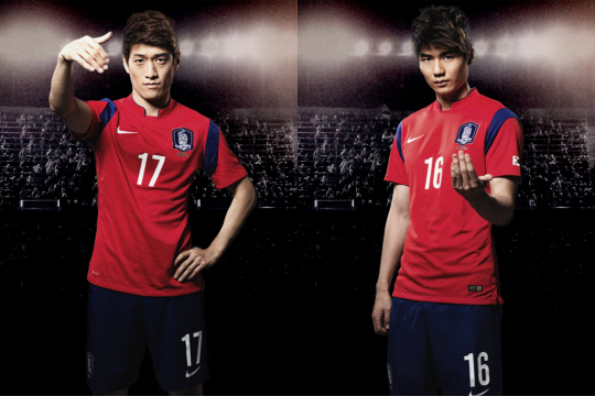 대한축구협회 공식 용품 스폰서인 나이키는 27일 서울 광화문 광장에서 유니폼 공개식을 가졌다. 이번 유니폼은 전통적인 붉은색 상의와 푸른색 하의를 바탕으로 태극문양과 호랑이, 전사의 이미지 등을 형상화했다. 양쪽 어깨 이음선에는 파란색의 디자인 하이라이트로 갑옷을 입은 전사의 강인함을 표현했다는 게 나이키의 설명이다. 상의 깃은 한복에서 영감을 받은 굴곡을 채택했다. 엠블럼은 기존 프린팅 대신 금색 자수 모양을 택해 국가대표로서의 자긍심 고취를 이끌어 내려 했다.