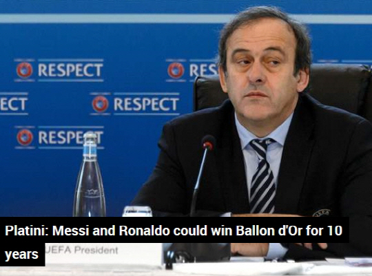 미셸 플라티니 유럽축구연맹(UEFA) 회장이 향후 10년간 발롱도르의 후보를 발표했다. 리오넬 메시(바르셀로나)와 크리스티아누 호날두(레알 마드리드)였다.