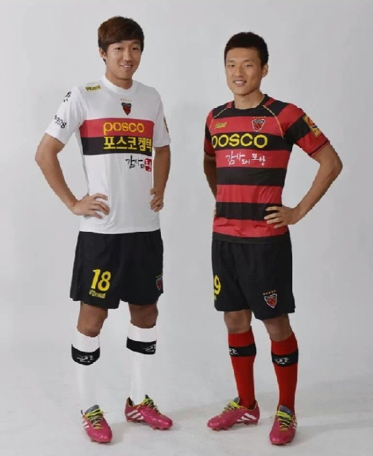 포항은 올 시즌 붉은 바탕에 검은색 줄무늬가 들어간 전통색의 홈 유니폼을 입고 그라운드를 누빈다. '디펜딩챔피언'의 자존심과 아시아챔피언스리그(ACL) 정상 재등극의 의지를 담았다. 지난해 K-리그 클래식 우승으로 올 시즌엔 왼팔에 황금패치가 부착됐다. 지난달 25일 포항 스틸야드에서 펼쳐진 세레소 오사카(일본)와의 2014년 아시아챔피언스리그 본선 조별리그 첫 경기에서 첫 선을 보였다. 포항 구단 관계자는 "유니폼 공개를 전후해 유니폼 예약 주문량이 늘었다"며 미소를 지었다.