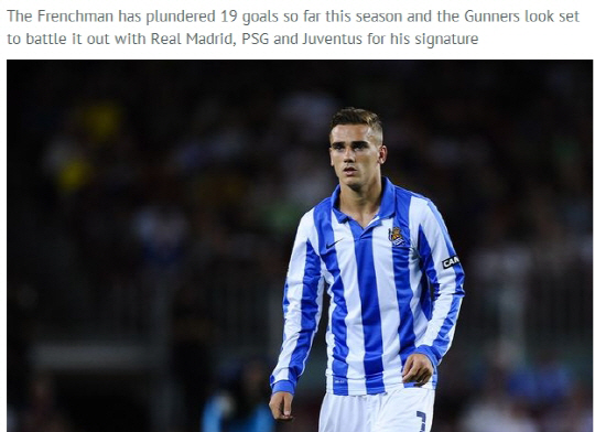 그리즈만의 맹활약이 이어지자 빅클럽들의 러브콜이 쏟아지고 있다. 일단 맨유가 지난 겨울이적시장부터 그리즈만의 영입을 노렸고, 레알 마드리드, 파리생제르맹, 유벤투스도 그리즈만의 상황을 주시하고 있다. 이러한 상황에서 아스널이 뛰어든 것이다. 일단 그리즈만은 올시즌은 레알 소시에다드에 전념하고 싶다는 뜻을 내비쳤다. 그는 "나는 레알 소시에다드에서 행복하다. 나는 여기서 올해를 마치고 싶고, 그 다음에 다른 상황을 보고 싶다"고 했다.