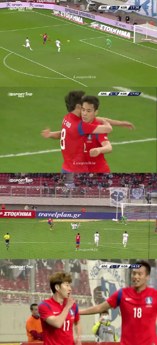 | 그리스전 2-0 완승, 한국 박주영 손흥민 연속골 |