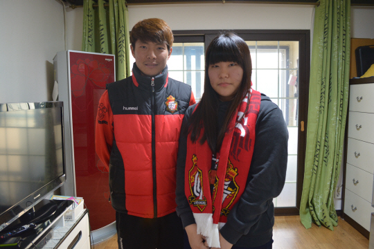 | 경남팬 송수영씨에게 연간회원권을 전달한 경남의 선수 송수영. 사진제공=경남FC |