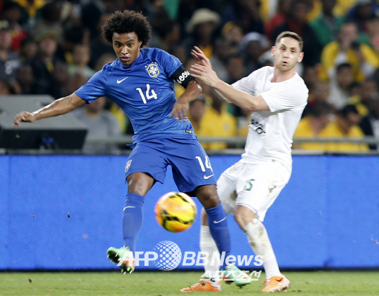 | 후반 들어 원정 유니폼으로 경기하는 브라질 선수들. ⓒAFPBBNews = News1 |