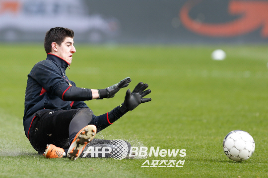 | Belgium's national footbal team goalkeeper Thibaut Courtois eyes a ball during a training session of the Red Devils on March 4, 2014 in Brussels, on the eve of their friendly match against Ivory Coast. ⓒAFPBBNews = News1 |