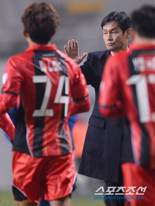 FC서울과 센트럴 코스트 마리너스(호주)의 2014 AFC 챔피언스리그(ACL) 조별라운드 1차전 경기가 25일 서울월드컵 경기장에서 열렸다. FC서울의 윤일록이 팀의 두번째 골을 성공시키고 최용수 감독과 하이파이브하고 있다. 상암=최문영 기자 deer@sportschosun.com /2014.02.25/