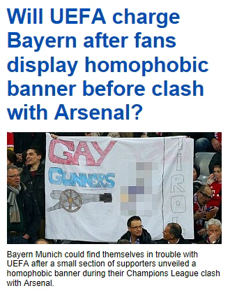 바이에른 뮌헨 홈구장에 내걸린 동성애 혐오 플래카드를 둘러싸고 논란이 일고 있다.