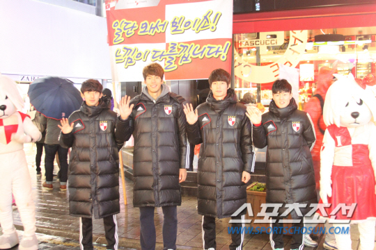 부산 개막전 거리홍보'세제믿윤 윤성효 부적' 받아가세요