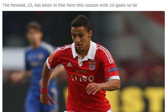 18일(한국시각) 영국 일간지 데일리미러는 리버풀이 벤피카의 스트라이커 호드리고 영입에 나섰다고 보도했다. 23세의 공격수 호드리고는 올시즌 10골을 넣으며 벤피카 공격의 한축을 담당하고 있다. 지난주 토트넘과의 유로파리그에서도 골을 기록했다. 브렌단 로저스 리버풀 감독은 올시즌 내내 호드리고를 지켜본 것으로 알려졌다. 올여름 영입해도 되겠다는 확신을 내린 것으로 보인다. 호드리고의 이적료는 2500만파운드 정도다.