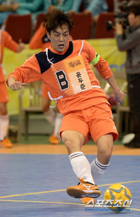 MBC 2014 설날특집 '아이돌스타 육상.양궁.풋살.컬링 선수권대회'가 30일, 31일 총 2부작으로 펼쳐졌다. 풋살 경기에서 B팀과 D팀이 결승전 경기를 펼쳤다. B팀이 D팀에 3대2 극적으로 승리하며 역전 우승을 차지했다. 비스트 윤두준이 돌파 후 동료에게 패스를 해주고 있다. 잠실=송정헌 기자 songs@sportschosun.com