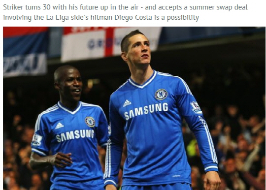 토레스는 3년전 5000만파운드에 첼시 유니폼을 입었다. 그러나 이후 부진이 계속되고 있다. 올시즌 잉글랜드 프리미어리그에서도 단 4골에 그쳤다. 토레스는 21일(한국시각) 영국 일간지 데일리미러와의 인터뷰에서 올여름 팀을 떠날 수도 있음을 인정했다. 첼시는 현재 아틀레티코 마드리드의 디에고 코스타에 관심을 보이고 있다. 토레스가 트레이드 카드로 활용될 수 있다. 토레스 역시 아틀레티코 복귀 가능성을 배제하지 않았다.