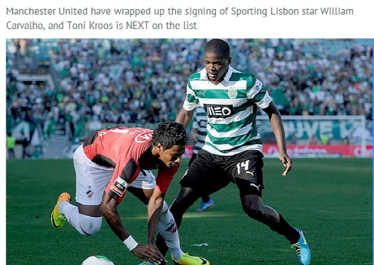 맨유는 올여름 적어도 5명 이상의 빅사이닝을 노리고 있다. 바이에른 뮌헨의 토니 크루스, 바르셀로나의 세스크 파브레가스, 애슬레틱 빌바오의 안데르 에레라, 사우스햄턴의 루크 쇼, 레알 마드리드의 파비우 코엔트랑 등이 물망에 오르고 있다.