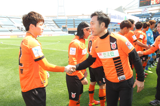 인기가수 이문세가 2014시즌 홈 경기 첫 승 기원 시축과 함께 제주유나이티드(SK 에너지 축구단)와 각별한 인연을 이어갔다.