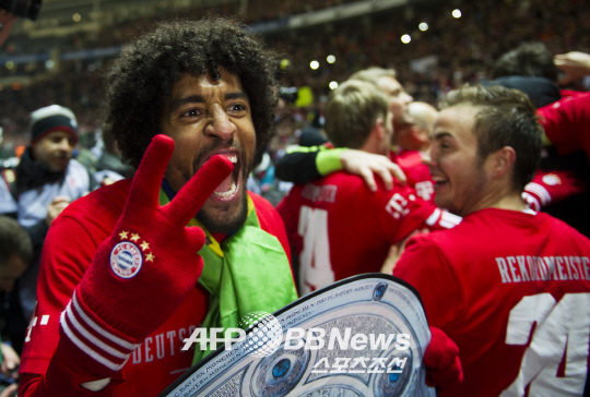 경기 뒤 바이에른 뮌헨 선수들은 기쁨을 만끽했다. 특히 이틀전 2017년까지 재계약을 한 수비수 단테는 두배의 기쁨을 맛봤다. 그는 24일 재계약을 했고, 칼 하인츠 루메니게 회장은 "지난시즌 단테를 데려온 것은 최근 영입작업 중 최고였다. 그는 팀에서 없어서는 안될 역할을 했다"며 그를 치켜세웠다. 이에 대해 단테는 "바이에른에 들어온 것은 인생 최고의 선택"이라며 "2017년까지 뛰게 돼 기쁘다. 더욱 즐기면서 뛰겠다"고 소감을 밝혔었다. 26일, 단테에게는 정말 최고의 날이었다. <스포츠2팀>