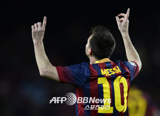 | ◇리오넬 메시가 골을 터트린 후 환호하고 있다. 바르셀로나(스페인)=ⓒAFPBBNews = News1 |