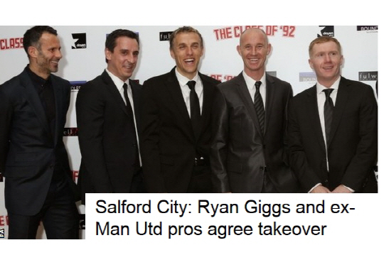 영국 공영방송 BBC는 28일(한국시각) "라이언 긱스, 폴 스콜스, 게리 네빌, 필립 네빌, 니키 버트 등 맨유에서 활약한 5명이 모여서 살퍼드시티FC를 인수하기로 했다"고 보도했다. '클래스 오브 92'인 이들은 맨유의 전설이다. 1992년 5월 잉글랜드축구협회(FA) 유스컵에서 맨유의 우승을 이끈 주역들로 그해 나란히 성인무대에 데뷔하면서 이런 별명이 붙었다. '클래스 오브 92'는 이들 5명과 데이비드 베컴을 포함해 총 6명이지만 이번 살퍼드시티 인수에서는 베컴이 빠졌다. 긱스는 여전히 현역으로 그라운드를 누비고 있다.
