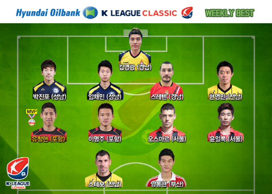 4라운드 베스트 11도 공개됐다. 3호골을 터트린 양동현(부산)과 울산에 첫 패전을 안긴 스테보(전남)가 최고의 공격수로 꼽혔다. 미드필드에는 유창현을 비롯해 윤일록, 오스마르(이상 서울) 이명주(포항)가 자리했고, 포백 라인은 현영민(전남) 스레텐(경남) 임채민 박진포(이상 성남)가 차지했다. 최고의 수문장 자리는 경남의 김영광에게 돌아갔다.