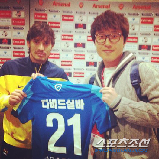 다비드 실바(맨시티)가 뜻깊은 선물을 받았다. 바로 한글 이름이 적힌 유니폼이다.