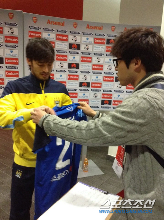 실바가 한글 이름이 선명한 유니폼을 들고 있는 사진이 SNS에 올라와 화제다. 이 사진은 30일 새벽(한국시각) 런던 에미레이트 스타디움에서 열린 아스널과 맨시티의 경기 후 찍혔다. 현장에 취재를 갔던 김장한 스포츠조선 통신원이 유니폼을 전달했다.
