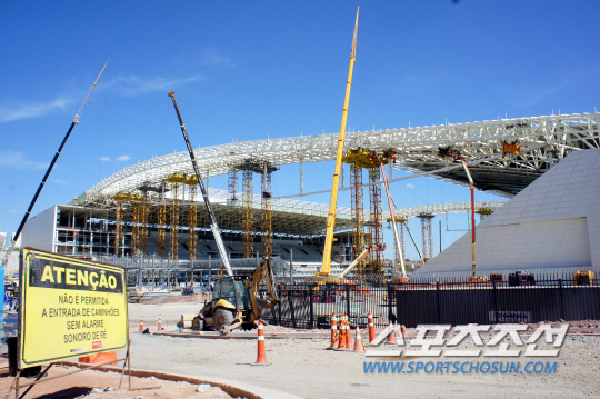 한국과 벨기에의 2014년 브라질월드컵 조별리그 최종전이 열리는 상파울루의 아레나 데 상파울루 경기장. 현재 완공률이 97%로 막바지 공사가 진행되고 있다. 상파울루(브라질)=하성룡 기자