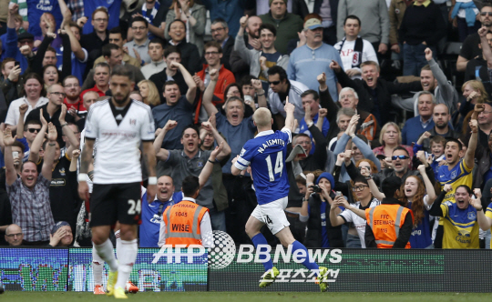 에버턴의 스티븐 네이스미스가 골을 넣은 뒤 세리머니를 펼치고 있다. ⓒAFPBBNews = News1