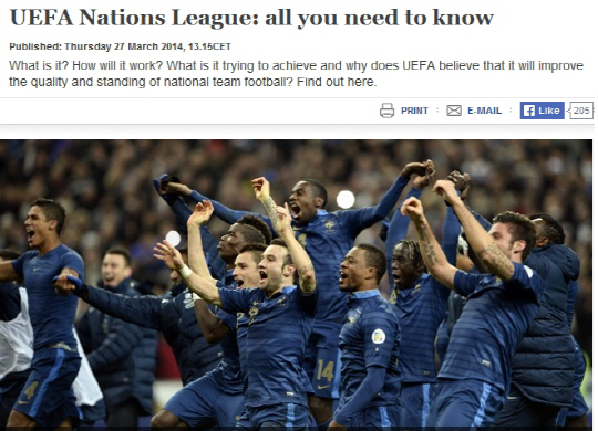 네이션스리그의 출범으로 UEFA의 규모는 더욱 커질 것으로 보인다. UEFA는 FIFA의 산하기관이지만 수익 면에서는 이미 FIFA를 넘어섰다. UEFA는 유럽챔피언스리그와 유럽선수권대회, 유로파리그 등을 개최하면서 국제 스포츠 기구 중 가장 많은 스폰서 수익을 얻고 있다. UEFA의 연간 스폰서 수익은 4억6800만달러(약 5000억원)에 이른다. FIFA의 연간 스폰서 수익 3억6650만달러(약 3920억원)보다 약 1억 달러 많다. 이러한 상황에서 FIFA는 네이션스리그의 출범이 부담스러울 수 밖에 없다. FIFA 수익 중 가장 큰 규모를 차지하는 월드컵에 대한 집중도가 떨어질 수 밖에 없기 때문이다. 네이션스리그는 차기 FIFA 회장 선거에도 영향을 미치고 있다. 플라티니 회장은 아직 공식적인 입장을 드러내지 않고 있지만 내년 6월 예정된 FIFA 회장 선거에 나갈 수 있다는 분석이 이어지고 있다. 플라티니 회장은 계속된 개혁의 성공으로 유럽 내 입지를 확실히 했다. 5선을 노리는 제프 블래터 FIFA 회장 입장에서는 심기가 불편할 수 밖에 없다.