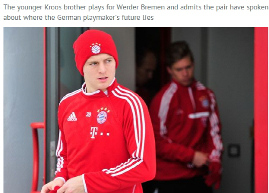 3일(한국시각) 영국 일간지 데일리미러는 맨유가 크루스 영입에 구단 기록인 4000만파운드를 투자할 계획이라고 보도했다. 중앙 미드필더 보강을 노리는 맨유는 크루스를 올여름 핵심 영입으로 간주하고 있다. 바이에른 뮌헨의 반대에도 불구하고 지속적으로 영입을 시도하고 있는 이유다. 크루스는 이제 바이에른 뮌헨과 맺은 계약의 마지막해에 접어든다. 바이에른 뮌헨은 재계약을 시도하고 있지만, 크루스는 아직 이렇다할 답변을 내놓지 않고 있다. 바이에른 뮌헨 입장에서는 2015년 아무것도 얻지 못하고 크루스를 뺏길 수도 있는 상황이다. 잡고 싶지만 수익을 위해 팔아야 하는 딜레마에 놓인 것이다. 맨유는 엄청난 주급을 제시해 크루스를 유혹할 계획이다.