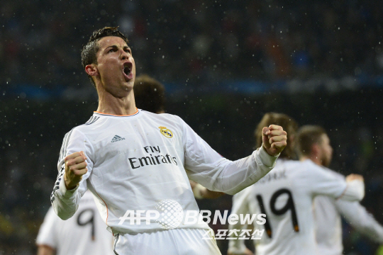 | ◇호날두가 3일(한국시각) 도르트문트와의 유럽챔피언스리그 8강 1차전에서 골을 터트린 후 포효하고 있다. 마드리드(스페인)=ⓒAFPBBNews = News1 |