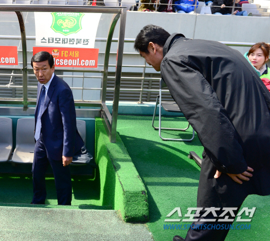 말 한마디, 한마디에 칼이 있었다. 서울과 전북이 6일 서울월드컵경기장에서 올시즌 처음으로 맞닥뜨렸다. 2014년 현대오일뱅크 K-리그 클래식 6라운드였다. 지난해 포항이 정상에 등극하면서 흐름이 끊겼으나 2009년 전북, 2010년 서울, 2011년 전북, 2012년 서울, 우승컵을 양분했다. 라이벌로 자리잡았다. 최용수 감독은 경기 전 최강희 감독에게 찾아가 90도 인사를 했다. 물론 양보는 없었다. '최'와 '최'의 대결, 그라운드는 뜨거웠다. 피튀기는 승부였다. 하지만 누구도 웃지 못했다. 1대1로 혈전은 막을 내렸다.
