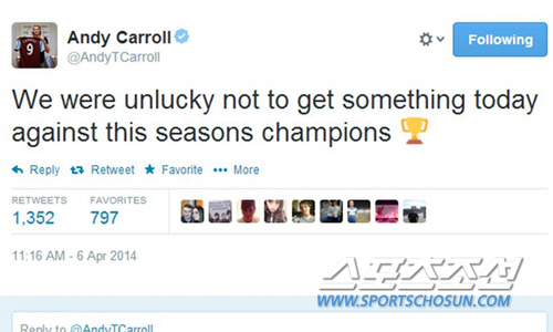 '3500만 파운드의 사나이' 앤디 캐롤(25·웨스트햄 유나이티드)이 '친정팀' 리버풀에 대해 '챔피언'이라고 호칭해 눈길을 끈다.