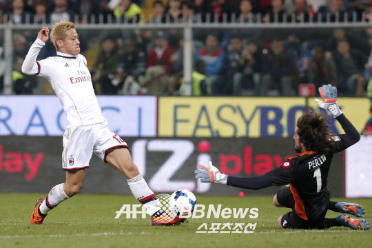 혼다는 8일(한국시각) 이탈리아 제노아의 스타디오 코무날레 루이지 페라리스에서 열린 제노아와의 2013~2014시즌 세리에A 28라운드에서 팀이 1-0으로 앞서고 있던 후반 11분 득점포를 쏘아 올렸다. 중원에서 이어진 패스를 받아 수비수를 제치고 골키퍼오 맞선 상황에서 침착하게 슛을 성공시켜 골망을 갈랐다. 이로써 지난 1월 AC밀란 유니폼을 입은 혼다는 12경기 만에 마수걸이포를 쏘아 올리는 감격을 누렸다.