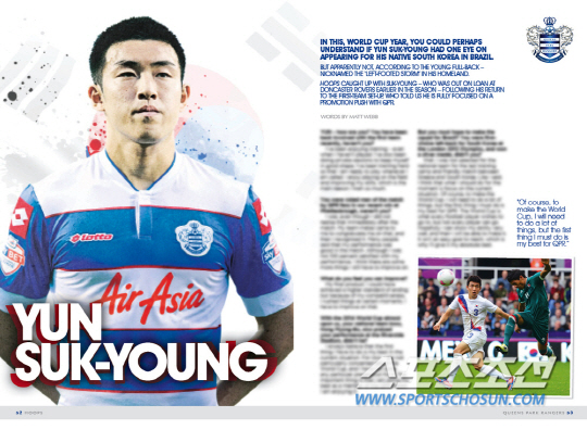 QPR의 구단매거진 'QPR?스(hoops)'는 오는 12일(현지시간) 노팅엄 포레스트 전을 앞두고 발행한 이번주 호에서 윤석영과의 인터뷰를 실었다고 발표했다.