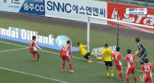 12일 오후 전남 광양전용구장에서 펼쳐진 K-리그 클래식 8라운드 전남-부산전, 전반 38분 논란의 장면이 나왔다.