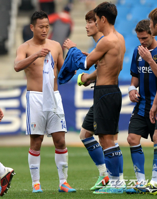 초반은 인천의 페이스였다. 하지만 투지 넘치는 모습으로 인천의 공격을 막아내 수원은 바로 주도권을 잡았다. 정대세와 산토스, 염기훈을 앞세운 수원은 전반 12분 첫 골을 뽑았다. 정대세가 페널티지역 오른쪽 모서리에서 얻은 프리킥을 염기훈이 찼고, 김은선의 머리를 맡고 골문을 향했다. 골키퍼 정면을 향했지만 워낙 강했던 탓에 권정혁 골키퍼 손에 맞고 들어갔다. 이후 양팀은 일진일퇴의 공방을 이어갔다. 수원은 16분 김은선의 단독찬스가 아쉽게 빗나가고, 44분 정대세의 헤딩슈팅이 크로스바를 맞고 나온 것이 아쉬운 찬스였다. 인천은 이보의 개인기술로 찬스를 만들었지만 결정력이 아쉬웠다. 전반 42분 이효균의 힐패스를 받아 골키퍼와 단독으로 맞선 이보의 슈팅이 정성룡 골키퍼의 선방에 걸린 것이 너무나 아쉬웠다.