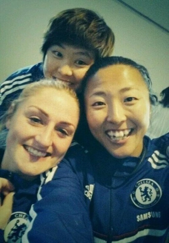 지소연 첼시 골 인증샷, 로라 쿰브스-유키 오기미와 '함박웃음'