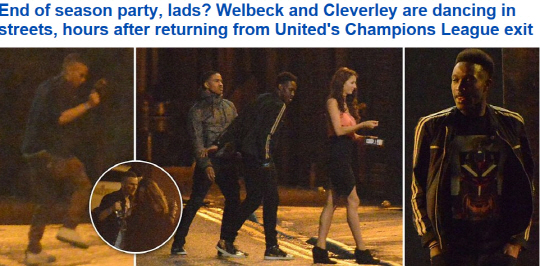 웰벡과 클레버리, 영은 지난 11일 뮌헨전에서 패배하고 맨체스터로 복귀한 뒤 바로 길거리로 나갔다. 맨체스터 시티의 한 클럽에서 밤새 파티를 즐겼고, 오전 3시 경 길거리에서 춤을 추고 여성과 대화를 나누는 장면이 영국 언론의 카메라에 잡혔다.