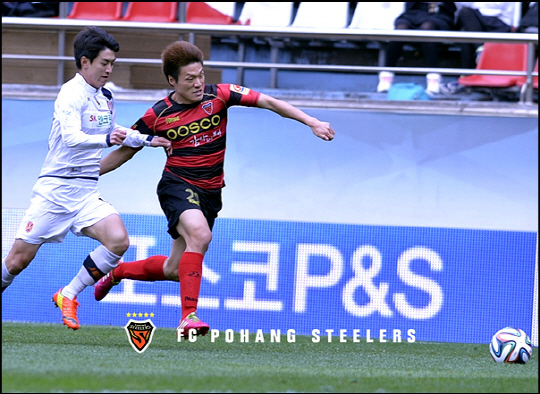 "현재 K리그에는 이명주만큼 잘하는 선수가 없다". 황선홍 감독은 이명주를 극찬했다. '로빙패스성애자'답게 톡 찍어 올린 패스는 상대 수비 5명을 단숨에 무너뜨렸다. 7경기 연속 공격 포인트(3골 6도움), 그저 대단했다. 1골 1도움의 김승대도 있다. 8라운드까지 슈팅 8개(유효슈팅 7개)로 5골이나 뽑아냈다. 2위 김신욱(5골)이 24개의 슈팅, 3위 양동현(4골)이 25개의 슈팅을 시도했으니 어찌 놀랍지 않은가. 2골 넣은 김재성이 스포트라이트를 독차지하기 힘든 팀, 이것이 포항이다.