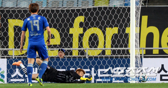 수원과 전남의 K리그 클래식 2014 7라운드 경기가 9일 수원월드컵경기장에서 열렸다. 전남 골키퍼 김병지가 슛팅을 몸을 날려 막아내고 있다. 수원=허상욱 기자 wook@sportschosun.com/2014.04.09/ |