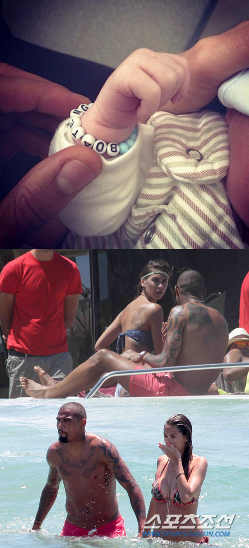 | 케빈 보아텡이 공개한 아들의 사진(위), 과거 즐겁게 데이트를 즐기고 있는 케빈 보아텡-멜리사 사타 커플. 사진제공=Topic/Splash News |