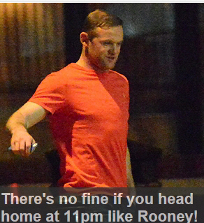 데일리메일은 '루니는 어떻게 행동해야 하는지를 벌금받은 동료들에게 보여줬다'고 썼다. 동료들이 징계를 받은 이튿날, 루니가 에이전트 폴 스트렛포드와의 경기후 외출에서 식사를 한 후 밤 11시에 귀가하는 '모범적인' 모습을 찍어올렸다.