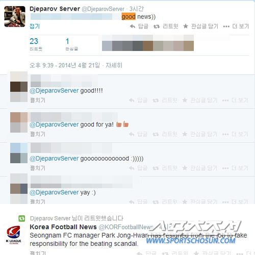 이에 제파로프는 자신의 SNS에 박종환 감독의 사임 소식 기사를 링크하며 'good news'라는 반응을 보였다. 이후에도 제파로프는 박종환 감독의 사임 소식을 전하는 K리그 소식을 전하는 트위터를 리트윗했고, 무슨 일이냐고 묻는 지인에게 "선수 얼굴을 주먹으로 때렸다"라고 설명해주는 등 기뻐하는 반응을 보였다. 제파로프의 팬들도 축하를 전했다.
