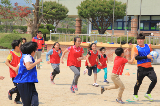 이날 덕신초를 방문한 충주의 한상학 박희성 박세환은 축구 수업에 참여한 덕신초등학생들이 축구에 대한 재미와 흥미를 느낄 수 있는데 중점을 두고 축구공을 활용한 다양한 게임을 진행했다.