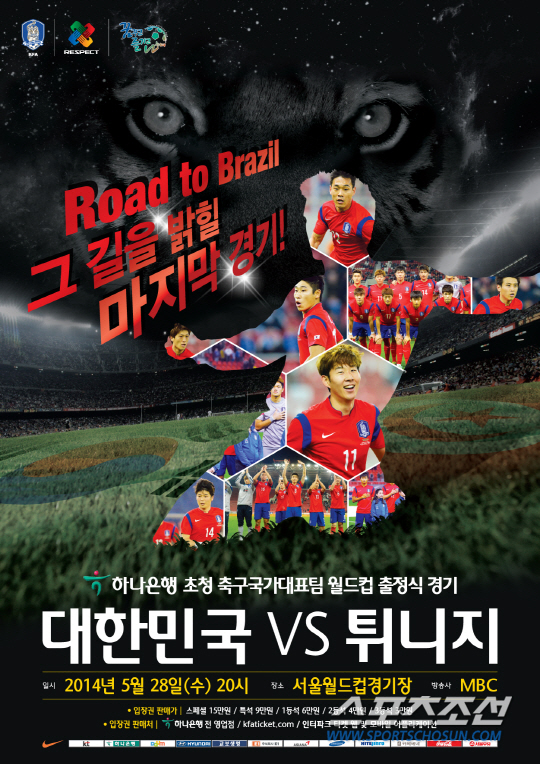 대한축구협회가 2014년 브라질월드컵을 앞두고 국내에서 마지막으로 열리는 튀니지와의 평가전 입장권 판매를 시작했다.