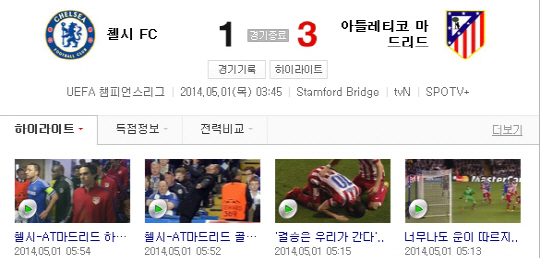 아틀레티코 마드리드는 1일(한국시간) 새벽 3시45분 영국 런던 스탬퍼드 브리지에서 열린 2013-2014시즌 유럽축구연맹(UEFA) 챔피언스리그(UCL) 4강 2차전에서 첼시를 3-1로 승리했다.