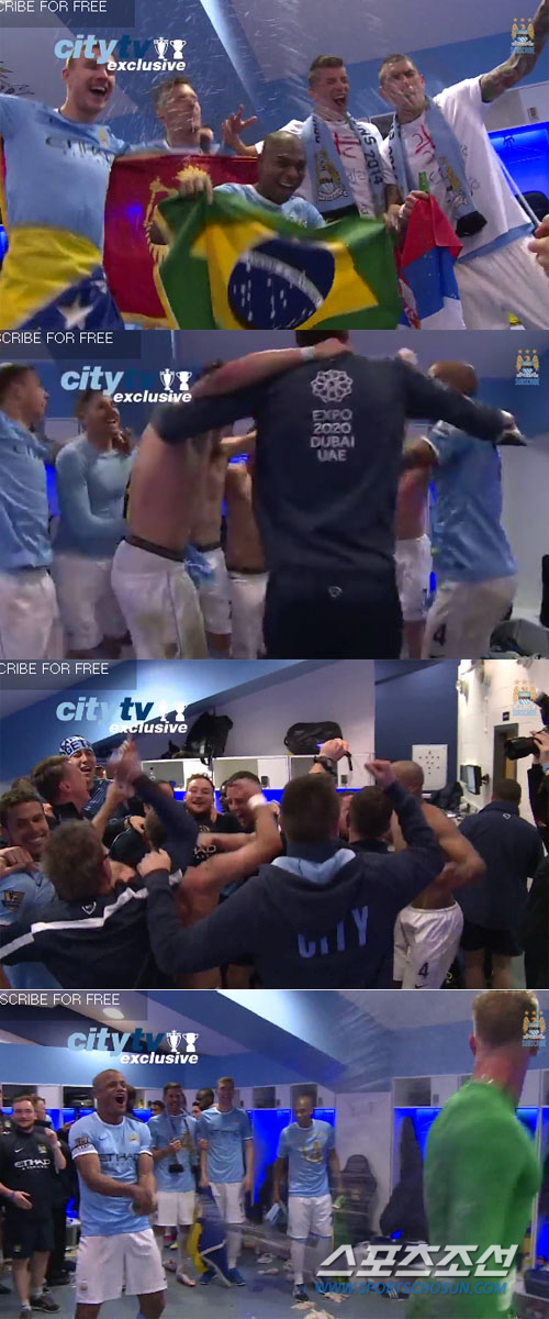 공개된 영상에서 조 하트, 헤수스 나바스, 뱅상 콤파니 등 맨시티 선수들은 서로에게 샴페인을 터뜨리는가 하면 어깨동무를 한 채 방방 뛰며 우승을 만끽하고 있다.