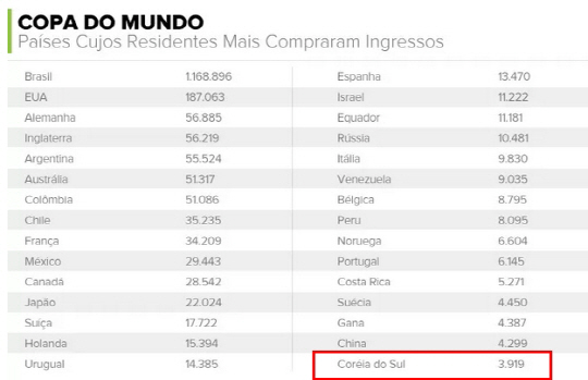 같은 H조 팀 중 러시아는 1만장, 벨기에는 8800장을 구입해 조별리그에서 압도적인 응원이 예상된다.